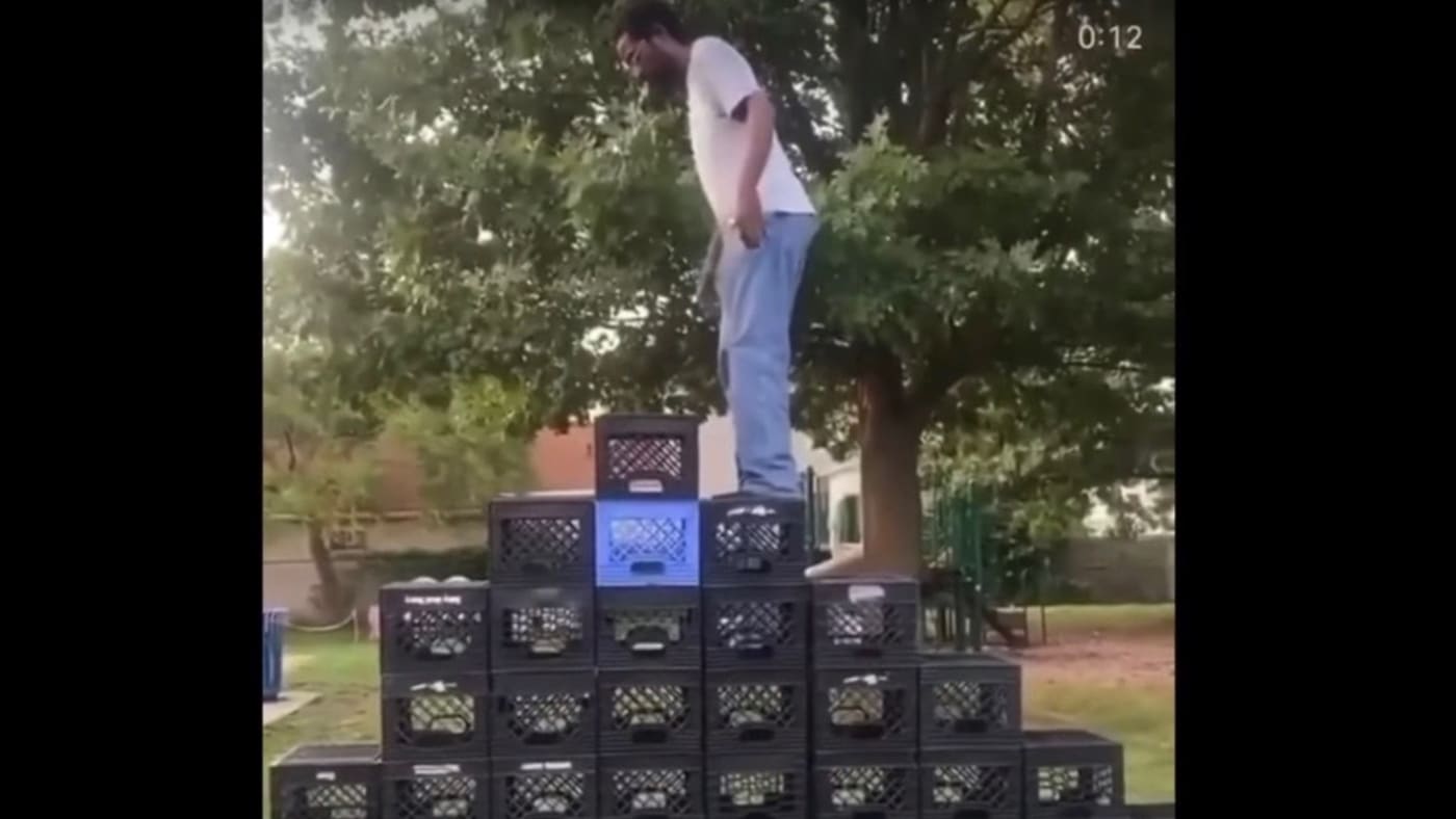 Social media users have been challenging each other to climb steps made of stacked milk crates but safety experts including the US. The milk crate challenge sees people attempting to climb a staircase of crates.